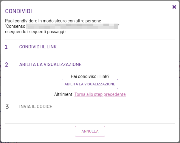 Se si è inviato il link al destinatario, cliccando sul pulsante Abilita la visualizzazione si attiva il terzo passaggio.