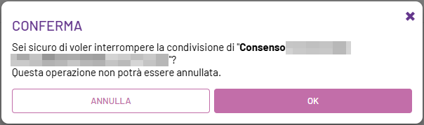 Cliccando il pulsante Blocca condivisione si aprirà una modale di conferma del blocco della condivisione.
